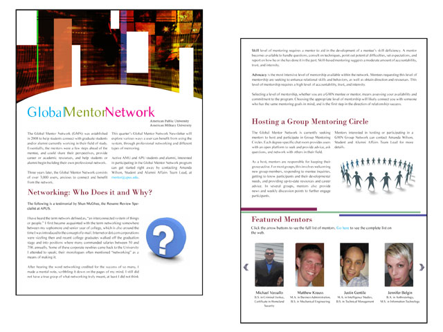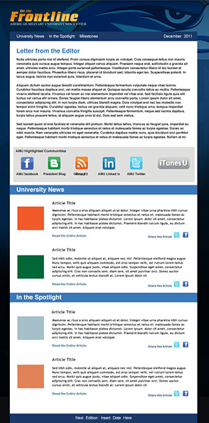 • Edited articles and created dynamic images for the 2 quarterly student newsletters, On the Frontline and Modern Scholar, which are sent to over 100,000 people including faculty, staff, students, and alumni